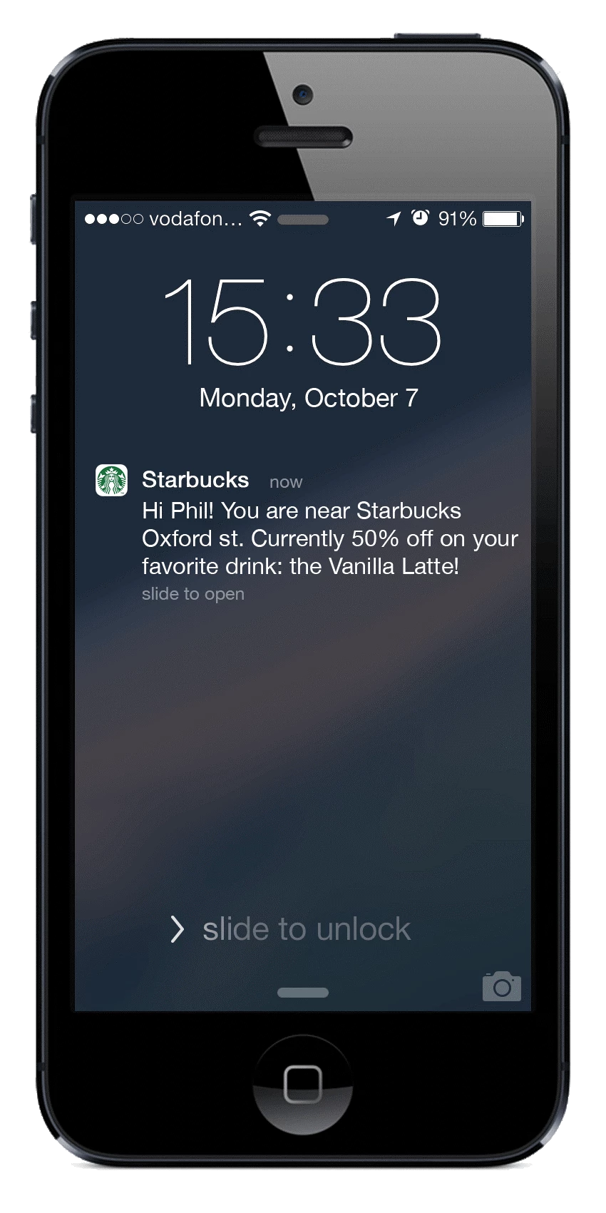 Users got it because they entered the geofence built by Starbucks around one of their stores.