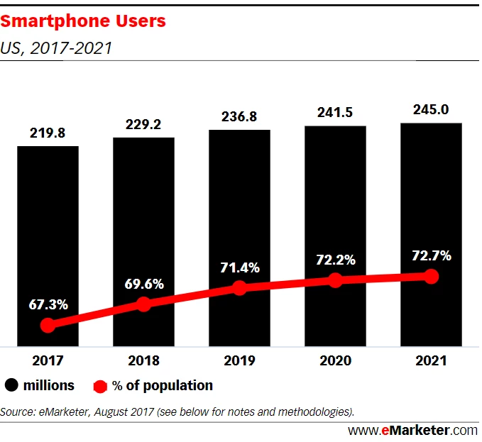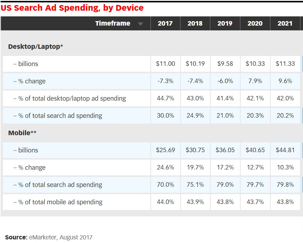 While this may appear a bit surprising, it is not hard to understand why we see such a trend. The rationale is straight forward, close to 70% of the population in US is using smartphones and hence 70% of the search ad spend is on mobile.
