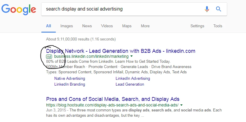 Search Advertising: Placing your ad in the sponsored section of a search engine listing