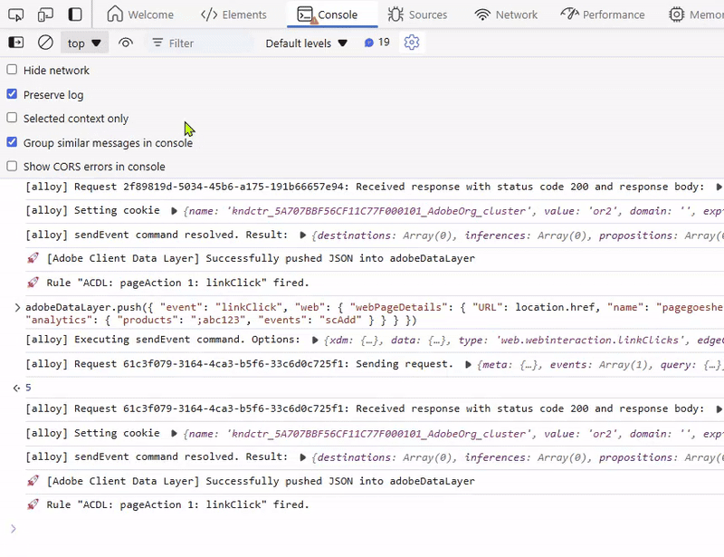 - Go to any of your web pages that use the AEP Web SDK