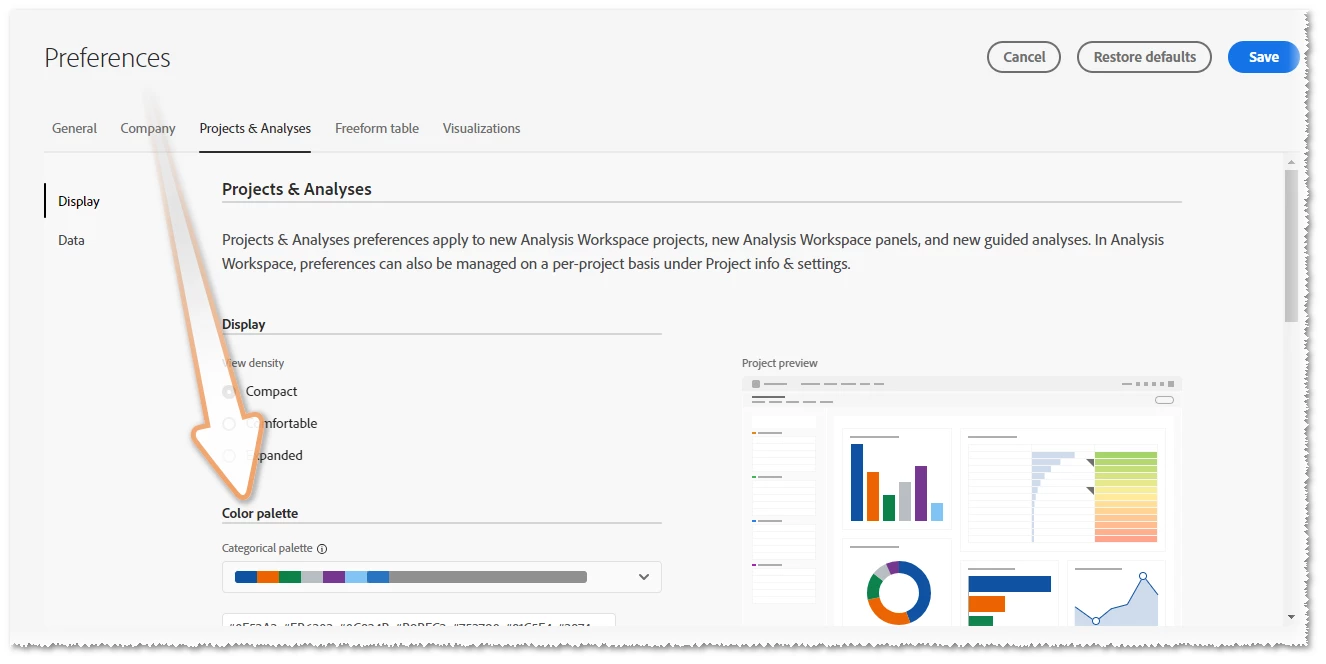 Description - The custom palette accessible from Project Info & Settings have the ability to be saved and reused for other dashboards easily.