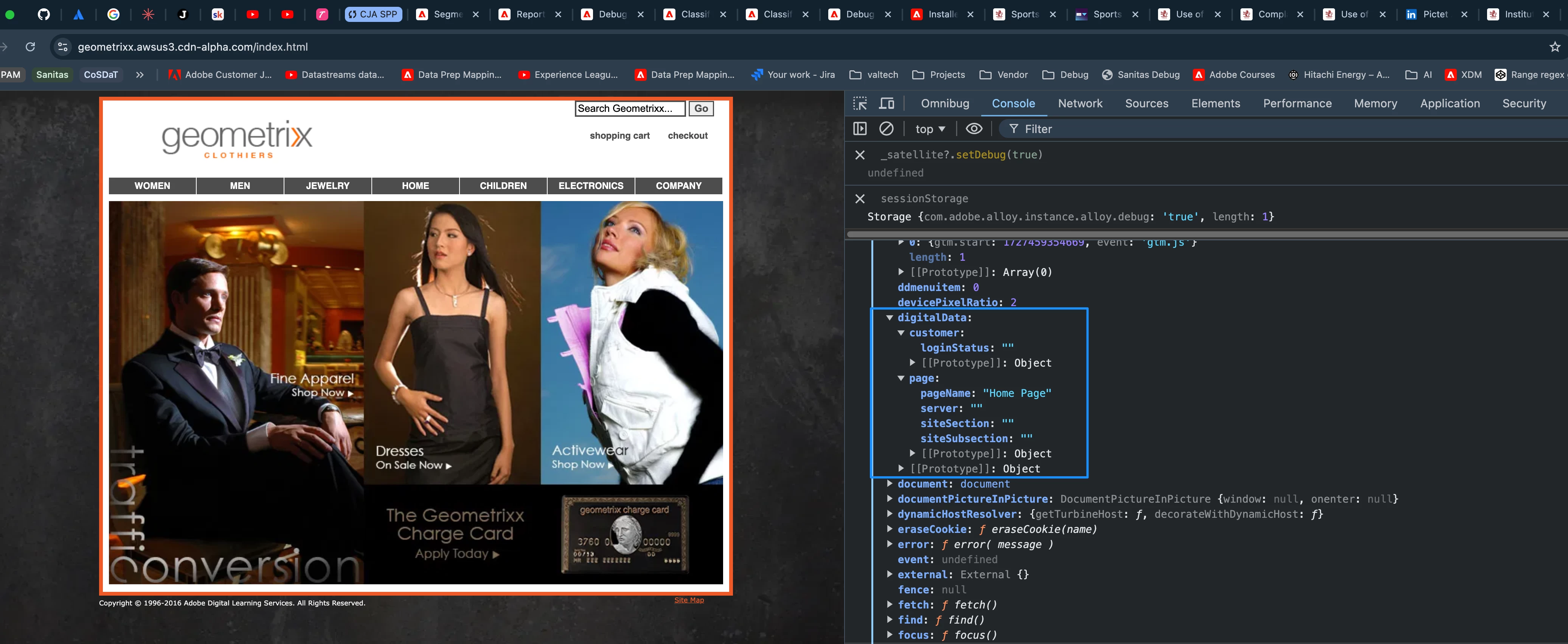 Demo websites I used for Web Sdk and analytics implementation : https://geometrixx.awsus3.cdn-alpha.com/index.html