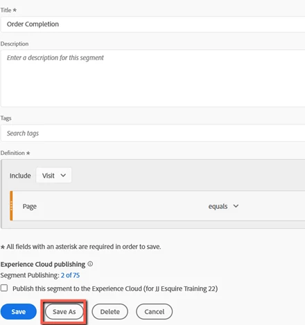 As long as I just use those segments in the workspace area, and open the segment builder the "save as" option is not displayed.