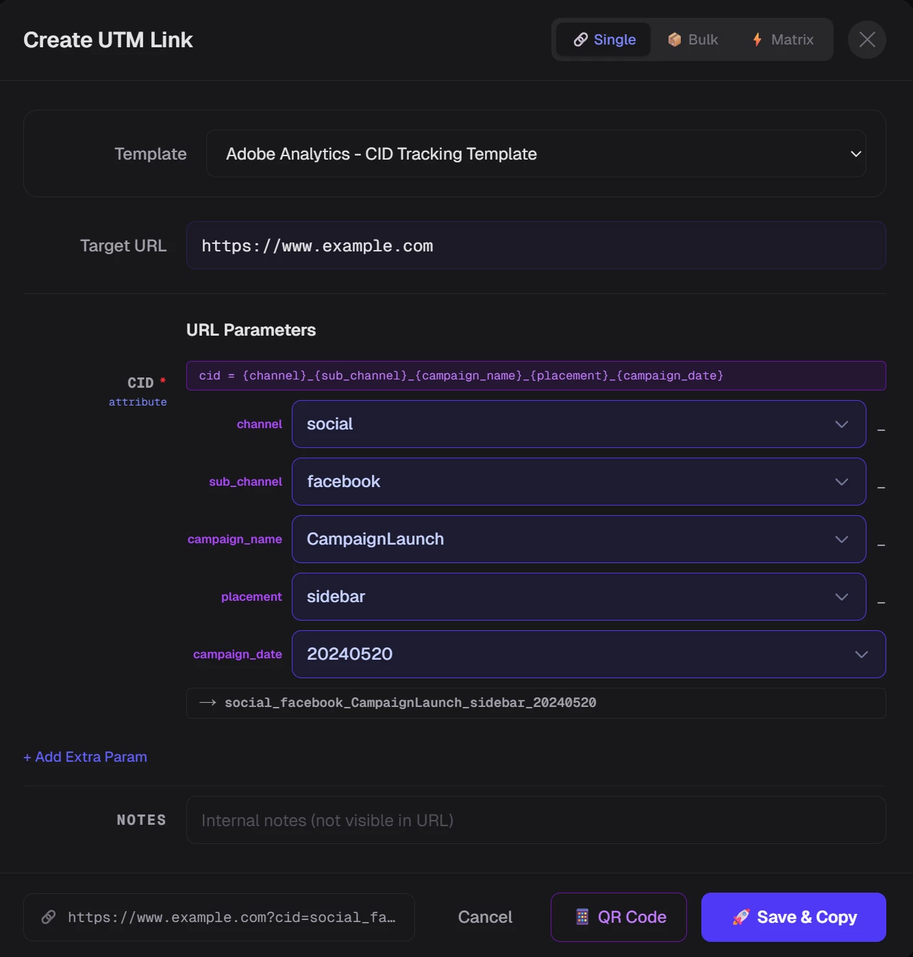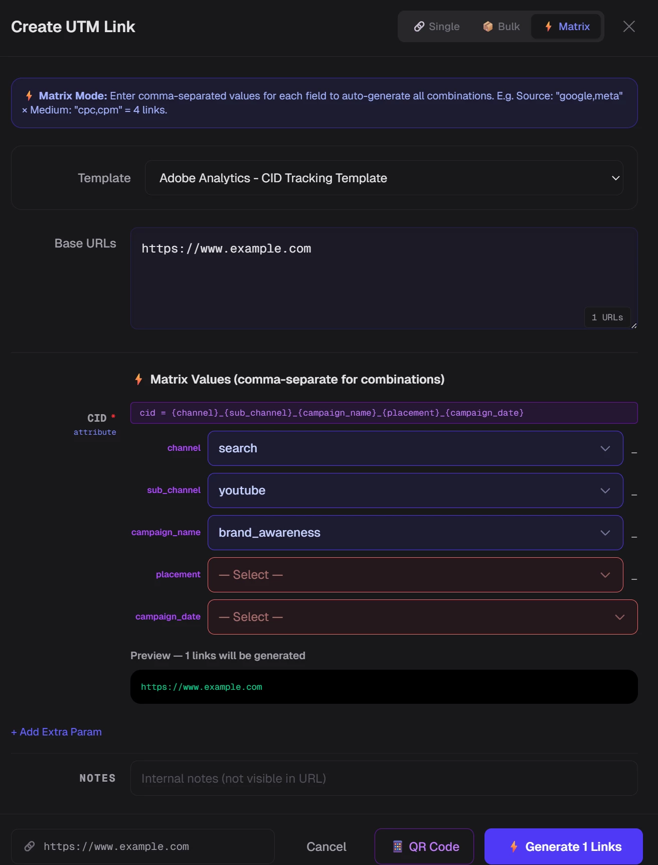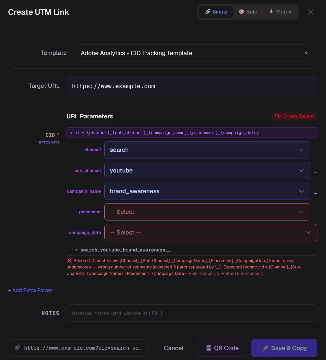 Dropdown Precision: When your team generates links, they simply select options from predefined dropdowns. No more typos, no more "creative" naming.