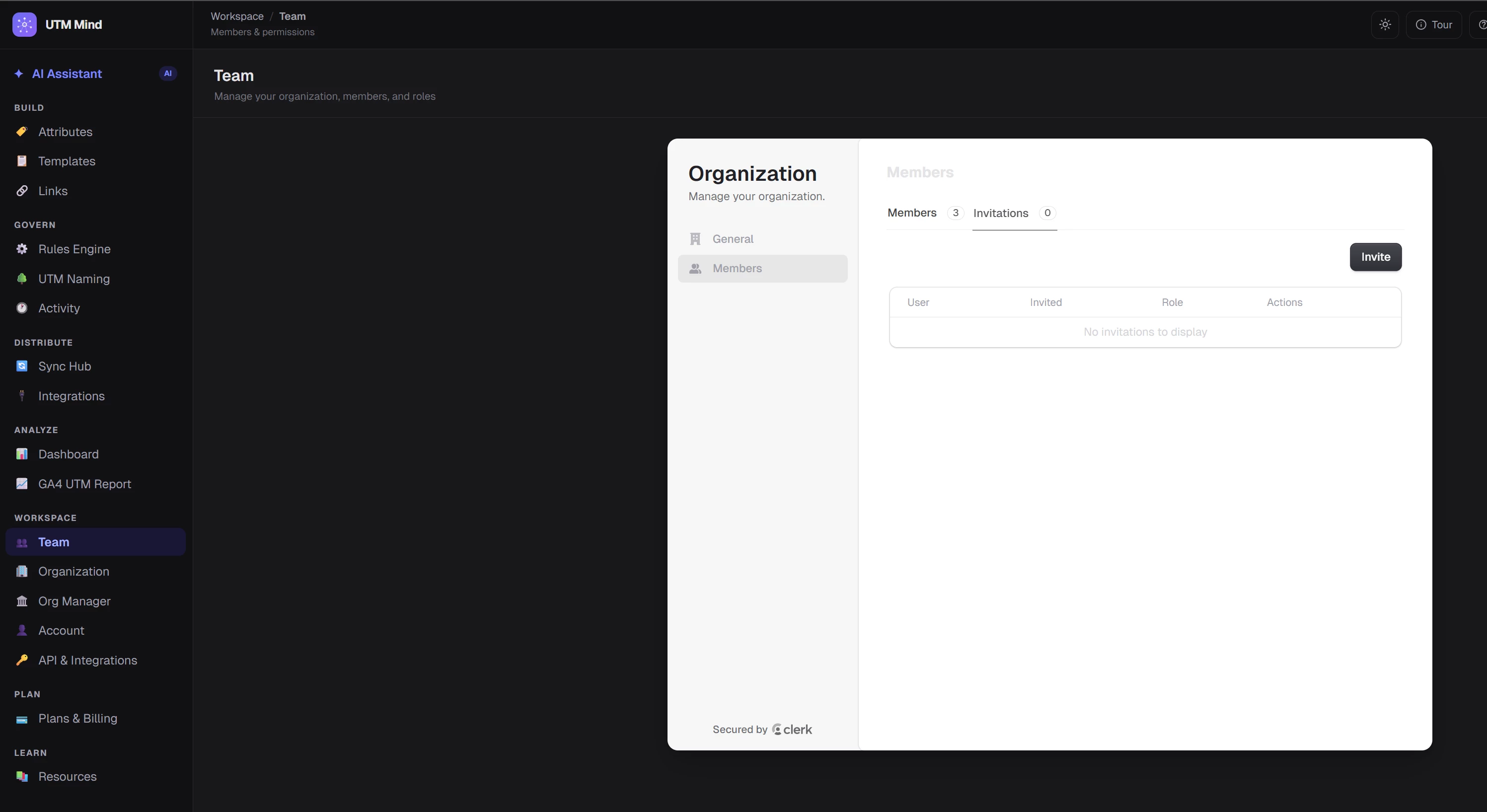 Tracking is a team sport. UTMMind allows you to invite teammates to co-work in a shared workspace.
