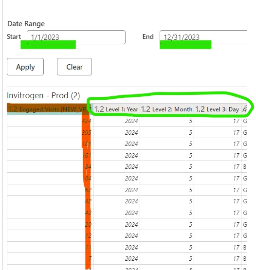 Firstly, I was so excited to learn about doing the ETL process all in the dataflow Microsoft workspace and then bam! you can just get loaded in your desktop dashboard file in under few minutes what would usually take 8 hours for me. But as I set up the connection in Power BI workspace dataflow, I specifically wanted to pull in 2023 data but regardless of whatever date I set, the data loaded is by default current days' data (5/17/2024). See screenshot, in green highlighted the dates, you can see in the data preview loaded the data is entirely different to the date I selected.