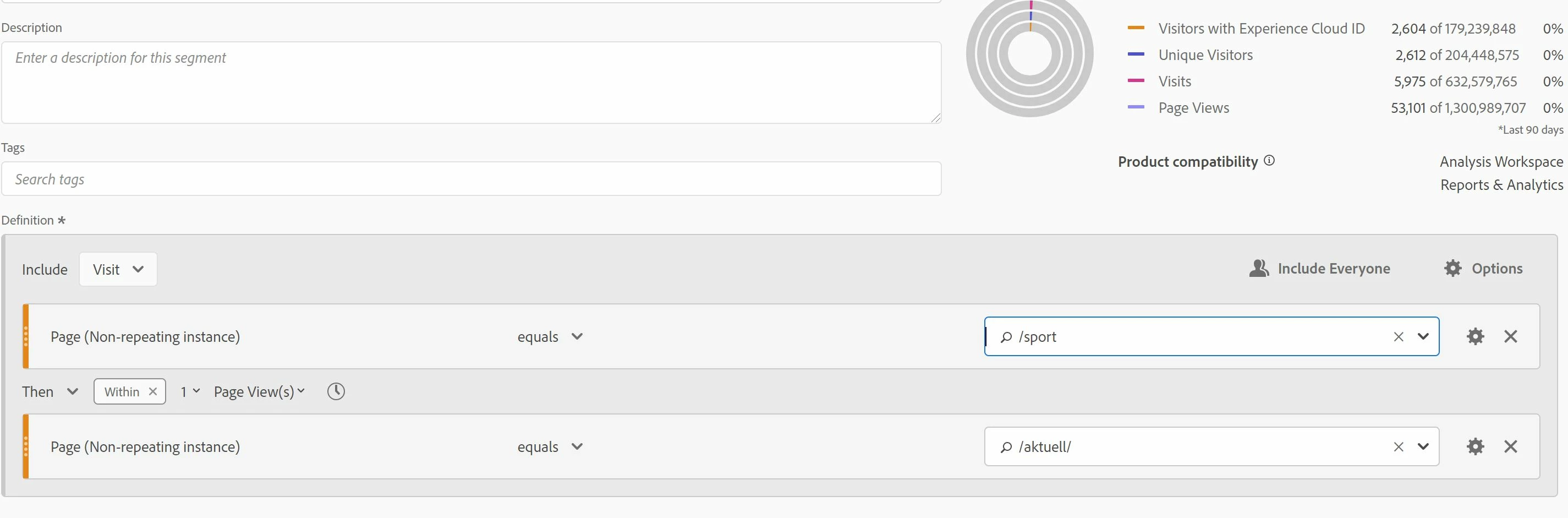 - Page equals "/sport" Then Within 1 Page View Page equals /aktuell/ -> How can two different pages fit within 1 Page Views, because within means for me that it must happen within ne page equals "/sport". Or do i not unterstand the meaning of within in this case?