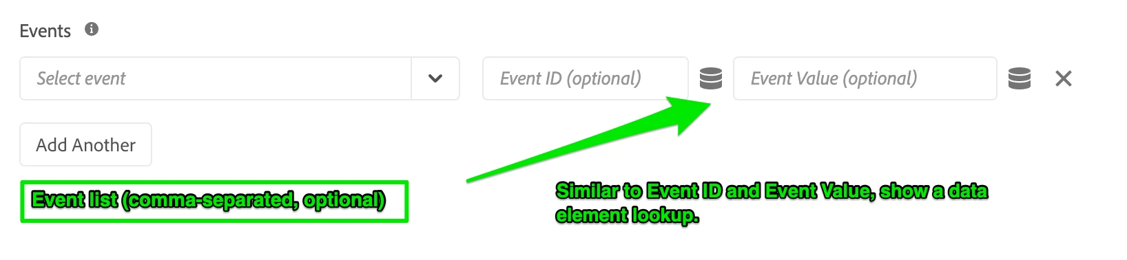 Description - in the current Analytics extension's set variables action, one can only add known events, and those only one by one. It would be amazing if one could just have a data element that can be passed in here, that holds a comma-separated events list e.g., coming from a lookup table