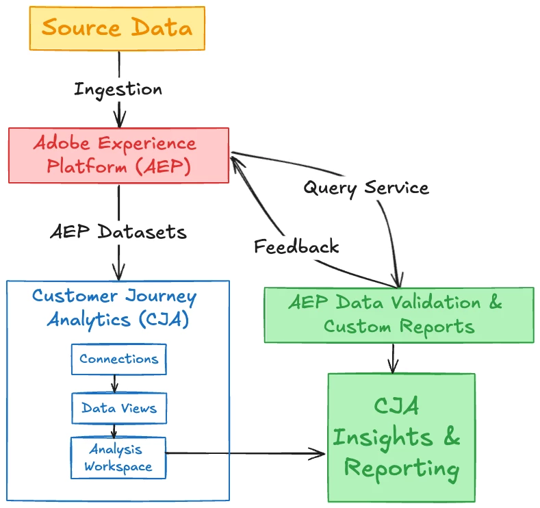- Data-Informed Decision Making: A comprehensive grasp of data flow from AEP to CJA, including knowledge of dataset lineage and Query Service capabilities, enables you to make more informed decisions about data strategy, integration, and utilization. This insight, paired with well-designed schemas, leads to more accurate and actionable analytics, directly impacting business outcomes.