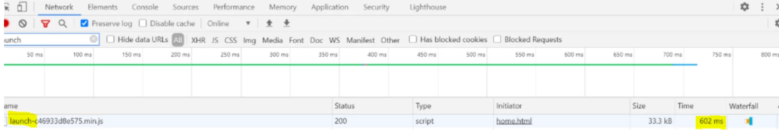 We have implemented the site through asynchronous call with adobe launch and recently noticed that the launch script take more time (500 to 900 ms) than usual while we checked from network tab. Please refer the attached screenshot for the reference.