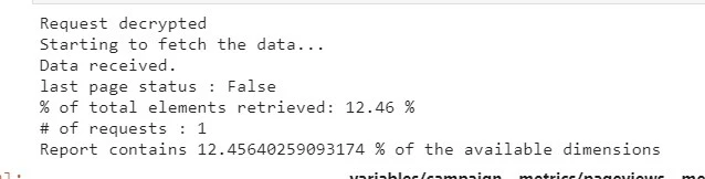 My method is using the Debugger in Workspace, getting the json file and then importing it into JN. When I execute my query, the API fetches only 12% of dimensions with only 1000 rows in my dataframe on one request.