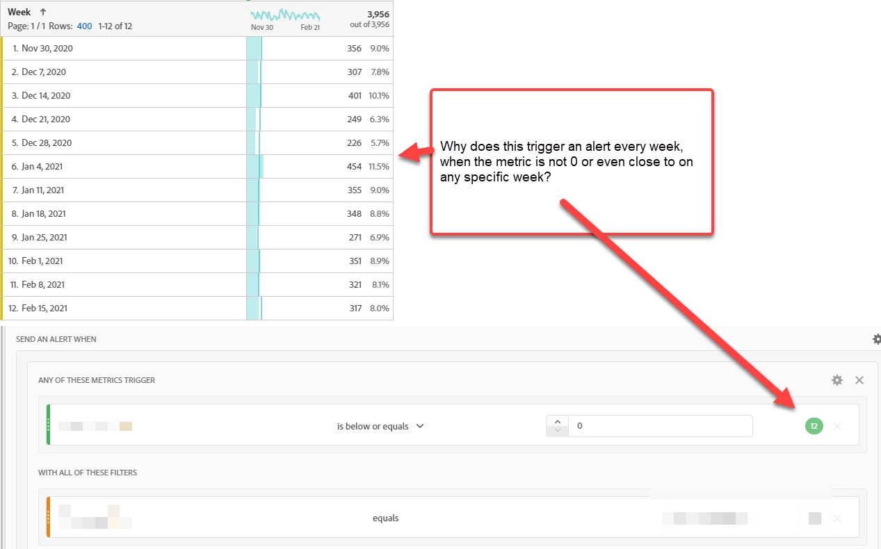 I would expect to be able to do this with the "is below or equals" operator, but for some reason the preview states it would create a false positive every week. So how to achieve this?