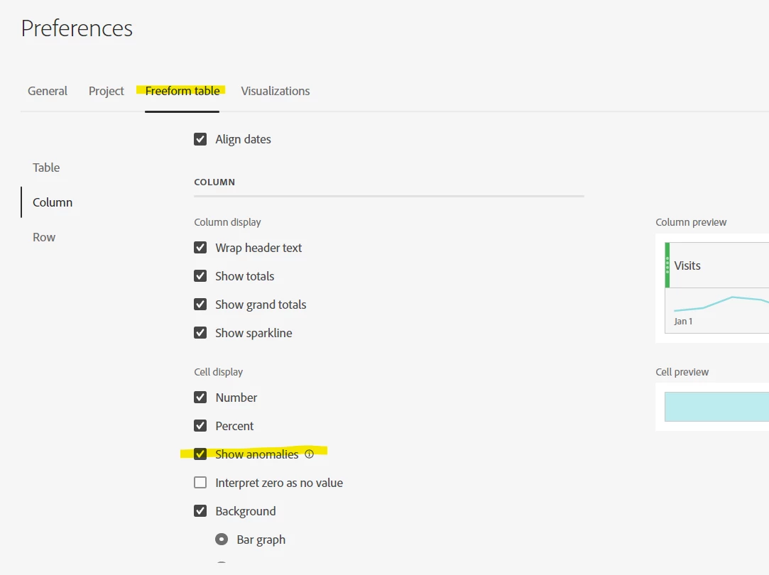 All three of these links will open user preferences... you just need to go to the Freeform Table tab, and enable "Show anomalies"