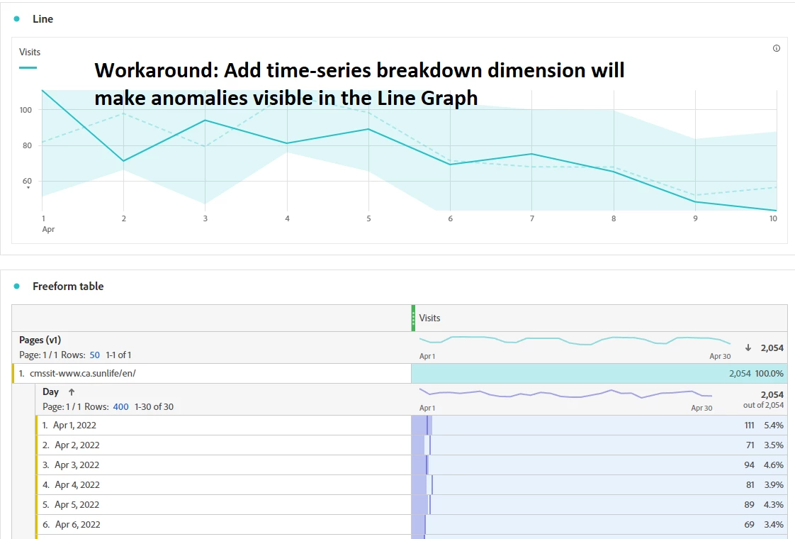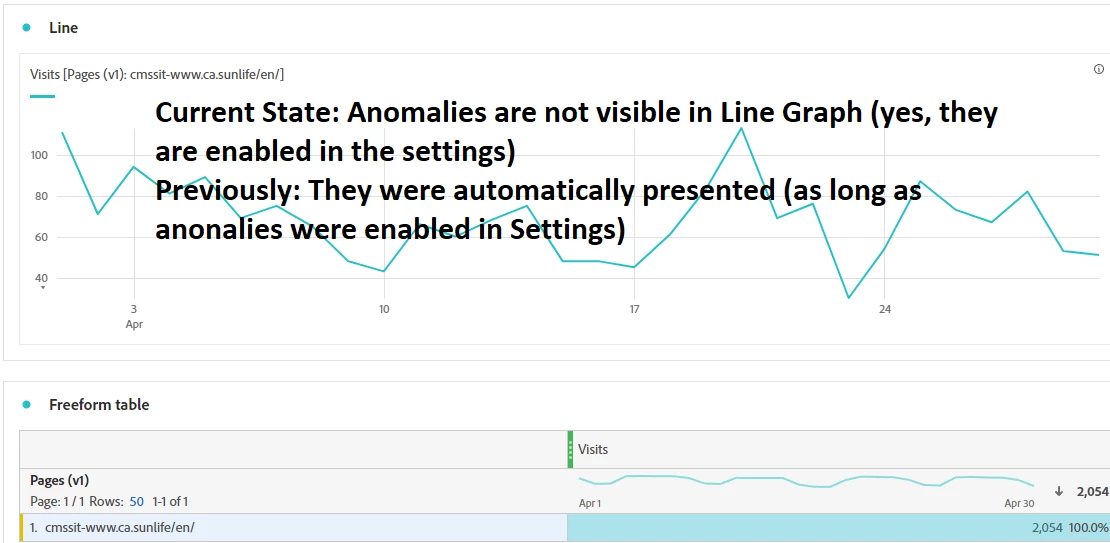 Analysis Workspace: Anomaly Detection in Line Graphs Should be Automatically Visible (as it used to be) | Community