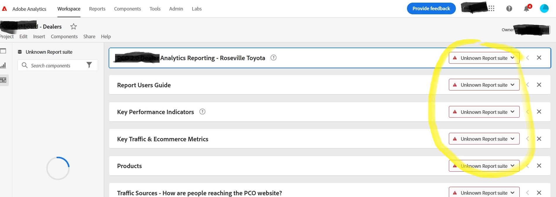 Analysis Workspace - Assigning a default available report suite on the analysis workspace dashboard