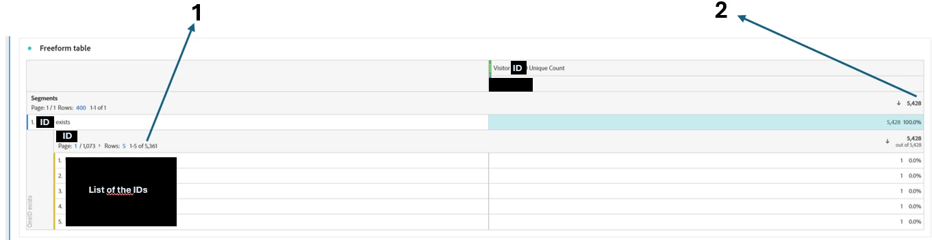 In the screenshot attached, this is a list of user IDs, there is a metric to count distinct value of userID (Visitor ID unique Count).