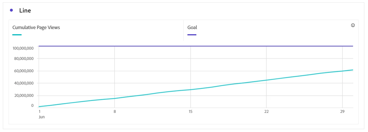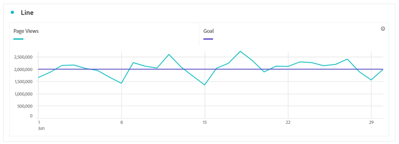If I wanted Pageviews Per Visit to be 3 as a benchmark, but right now they were reporting as 2.1, and I wanted to track that progress in relation to my benchmark, let's say on a line chart in Adobe Workspace, that seemingly is not possible. Instead, the best I can do is look at previous real world performance, as a "dynamic" bench mark.