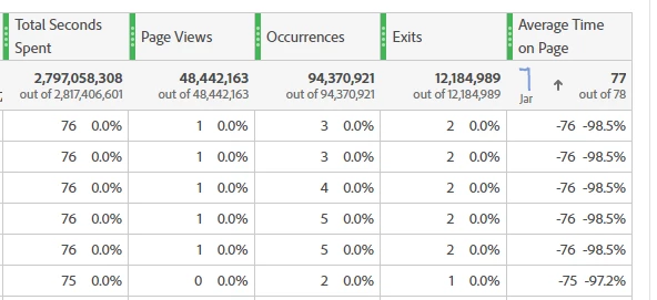 I am trying to look at average time on a specific page and when I do- I noticed some pages get negative values. I am thinking it is potentially because it is a visit level, but wondering if anyone has seen something similar with OOTB metrics?
