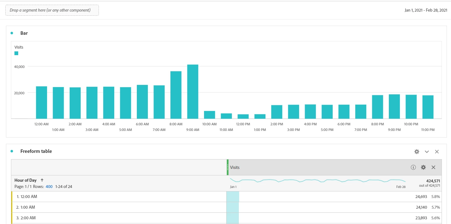 and then use that to breakdown by the Hour of Day dimension, I would expect it to give me the average per hour of day, however, it gives me only one value: the average of the entire selected time period. Like this: