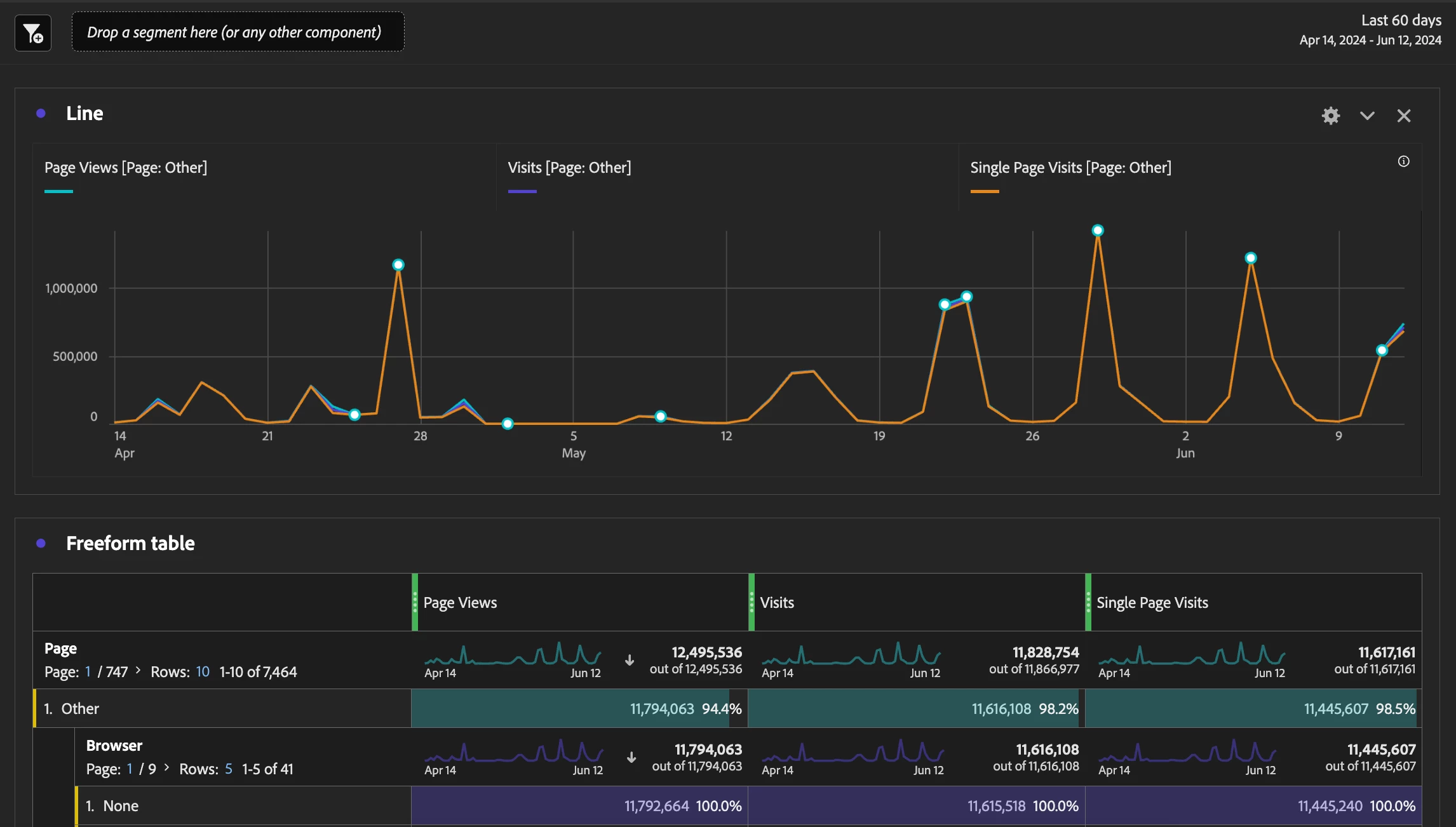 The "Browser" dimension is set to "None" which I assume is coming from Adobe Analytics?