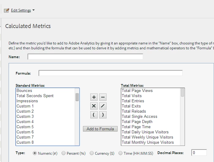 Calculated Metrics - Admin Creation