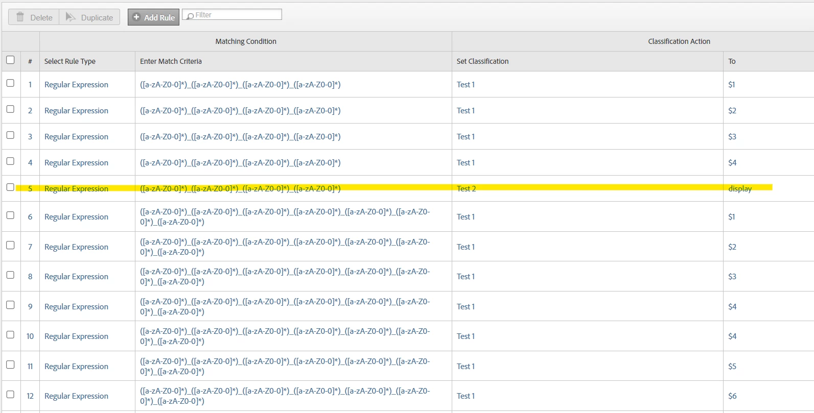 So you should be able to create a regex for processing rules with 10 sections