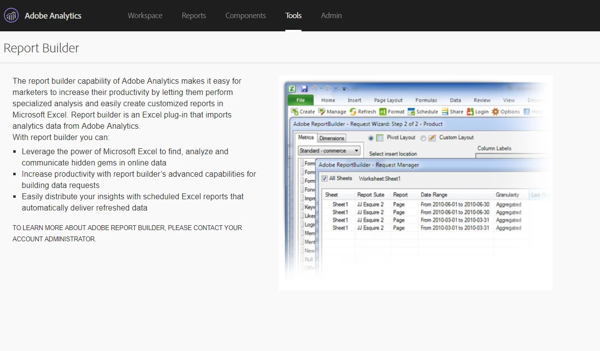 Cannot find report builder under "Adobe Experience Cloud > Analytics > Tools > Report Builder" it only has some introduction of report builder there.