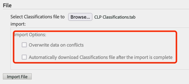 I'm trying to update the tracking code classification data, but the "Overwrite data on conflicts" cannot be checked after uploading the file. I found in the doc that "This option is not available for report suites enabled for the New Classification Architecture" ,which seems to be the reason. But what means New Classification Architecture? And how can I update the data by browser import?