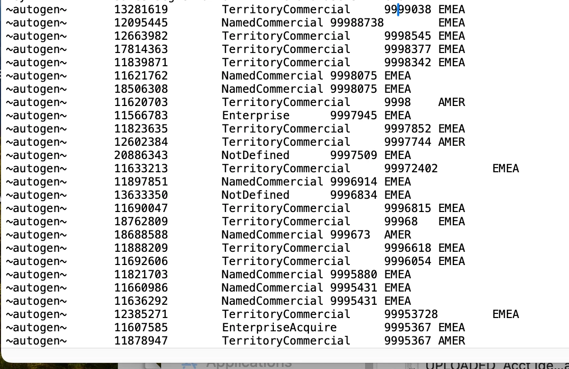 Hi, I've tried to upload a document of account IDs matching to our Sales Segmentation. However, I keep getting the error "There was a problem importing your file. Please try again later or use an FTP account to import your data." I would prefer to not use the FTP option (as I don't really know how) but can't figure out WHY I'm getting this error even after looking at all the documentation & troubleshoot help. I've ensured that there aren't any extra tabs/spaces in my file, but the formatting still looks wonky - could this be it?