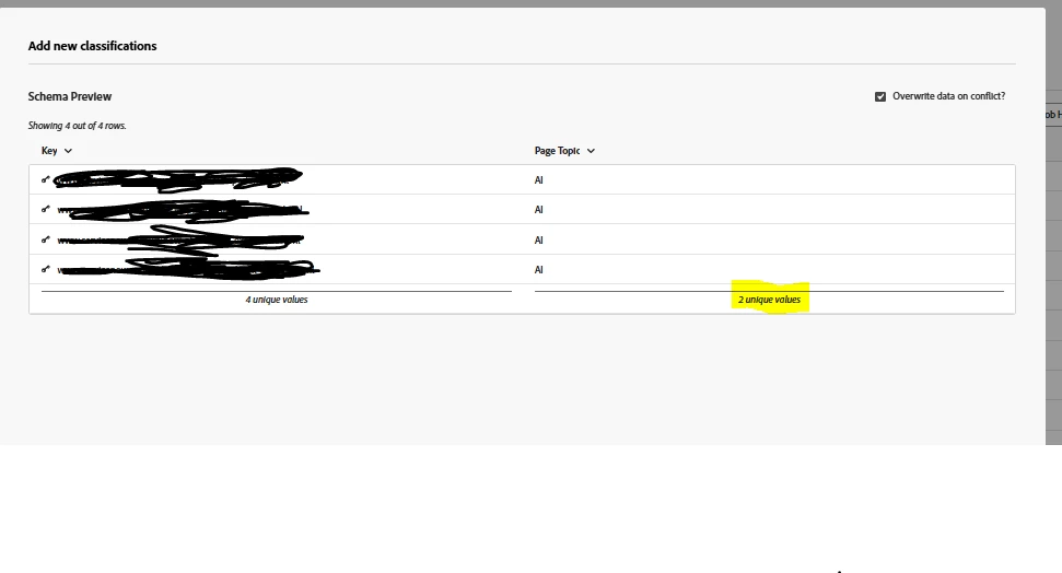 I've updated my classification set but it's saying i have 2 unique values, but I only have one ("AI"). Is this a problem, or is that fine? I wonder why it's registering as 2.