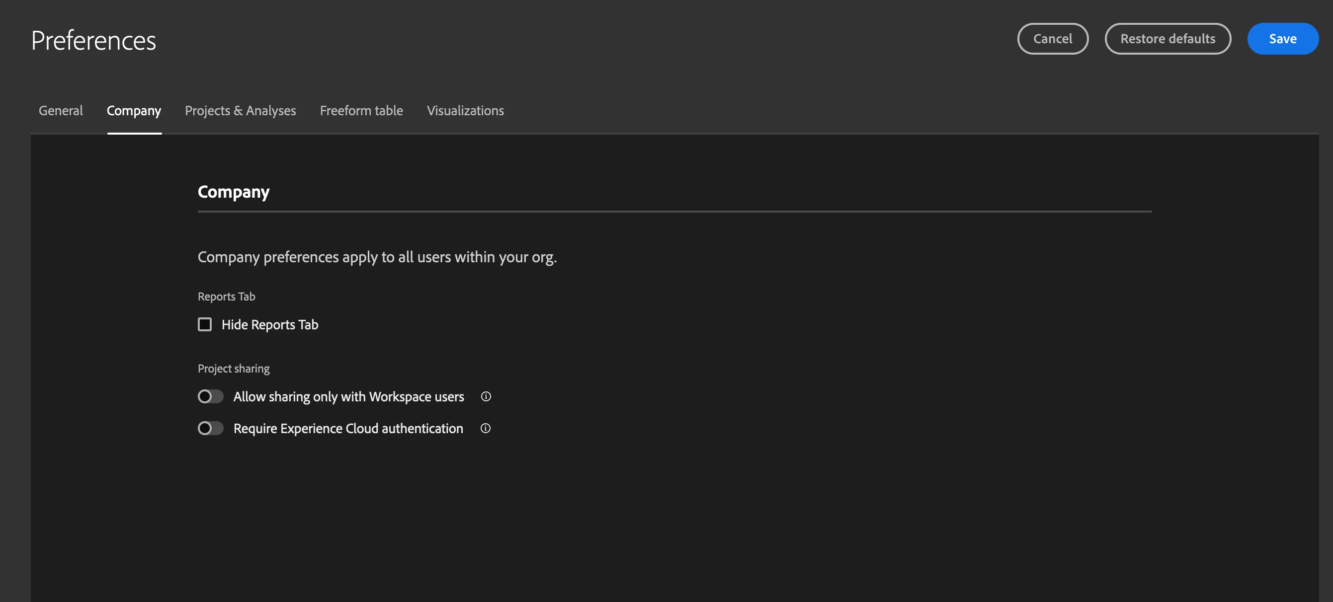 I am new to Adobe Analytics, my organization ask me to enable company policies enforcement on Adobe Analytic and enable the polities on each AA workspace, anyone can help me how to setup it, TIA.