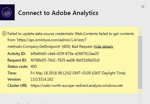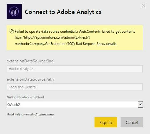 Hello, I am trying to connect Power BI to our Adobe Analytics instance in the way described in the following article: