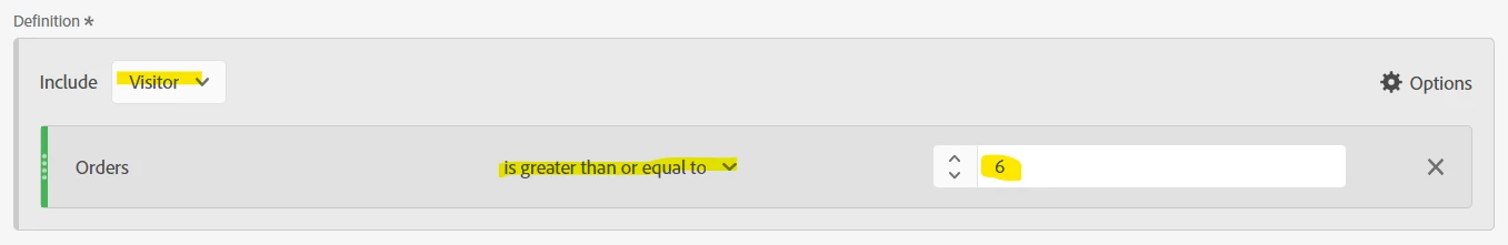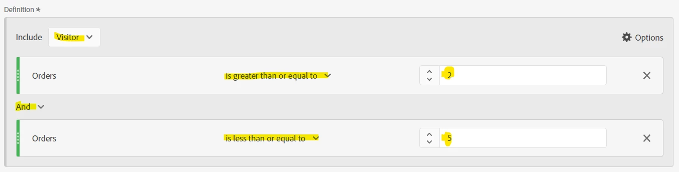I can define a segment as follows.