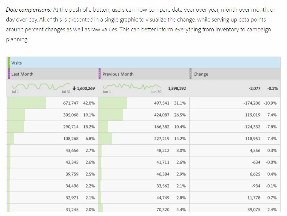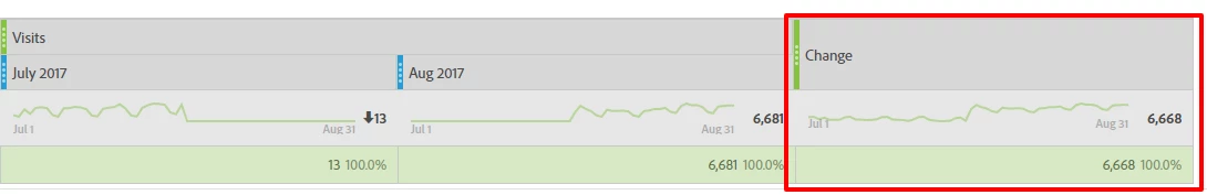 Once you have applied the above calculated metric to your report you would see "Change" data as shown in below screenshot.