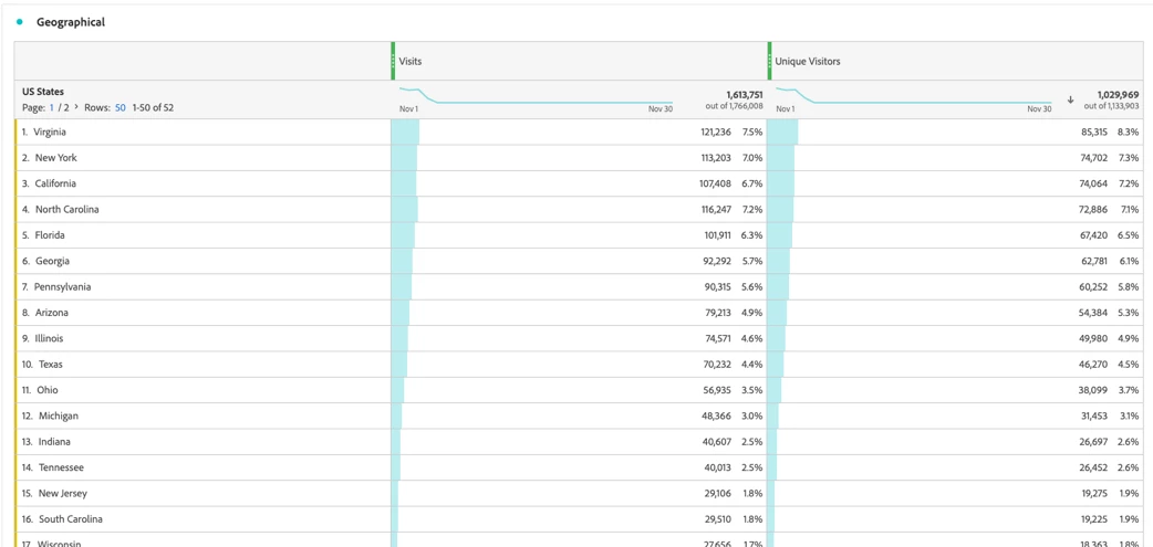- Validate your regional segments by breaking them down by the “US State” variable.
