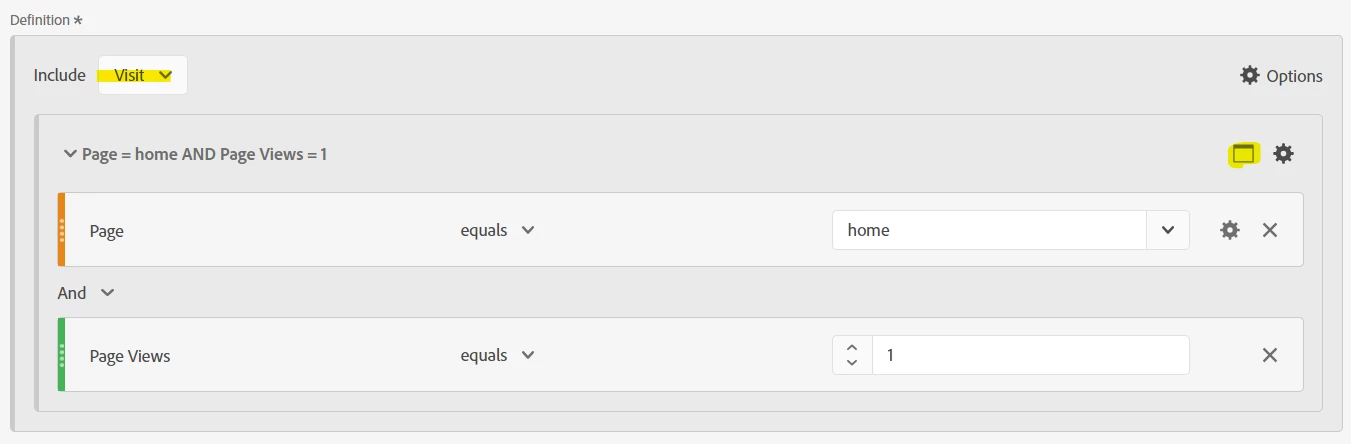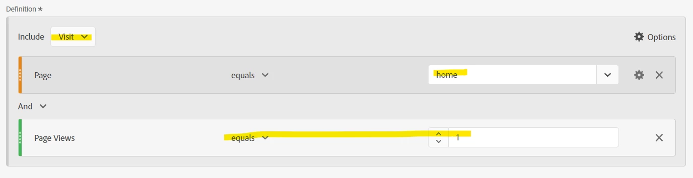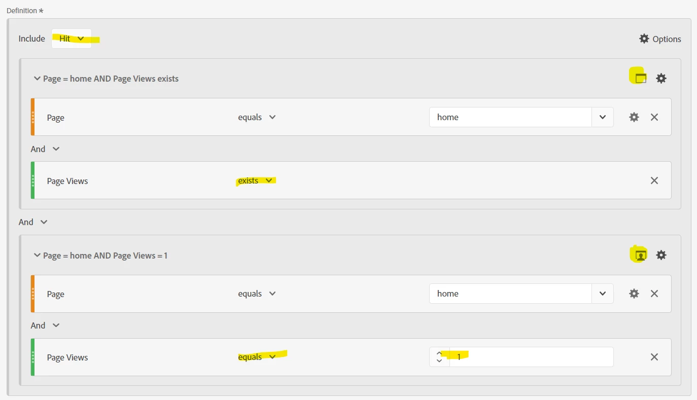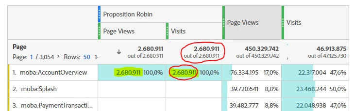 2) In my segment, the number of page views on this page has to be equals to the number of visit on this page (in yellow). So I'm sure the page is viewed only once