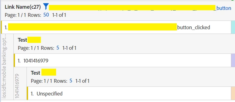 The data below, first dimension is link Name, then breakdown with prop, then eVar