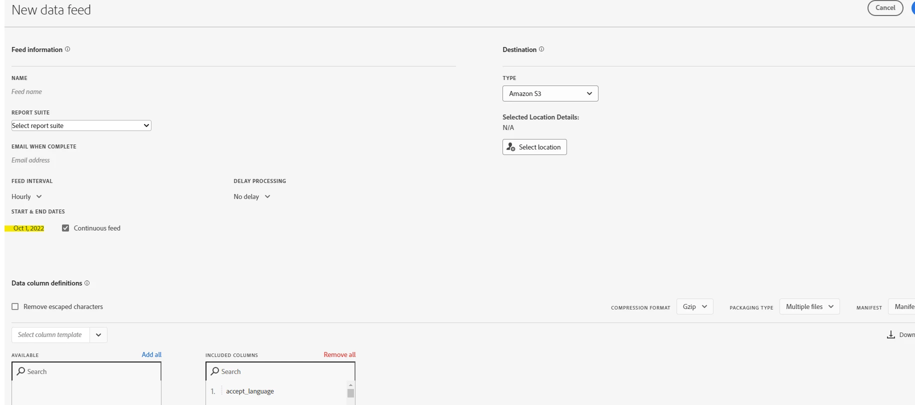 2)Can I create new data feed with new or all the required columns & run the jobs? will this capture the historical data?