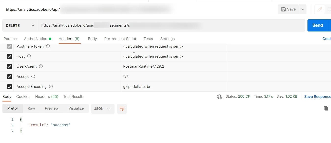 Can you confirm if you're using - https://developer.adobe.com/analytics-apis/docs/2.0/guides/endpoints/segments/#delete-a-segment?