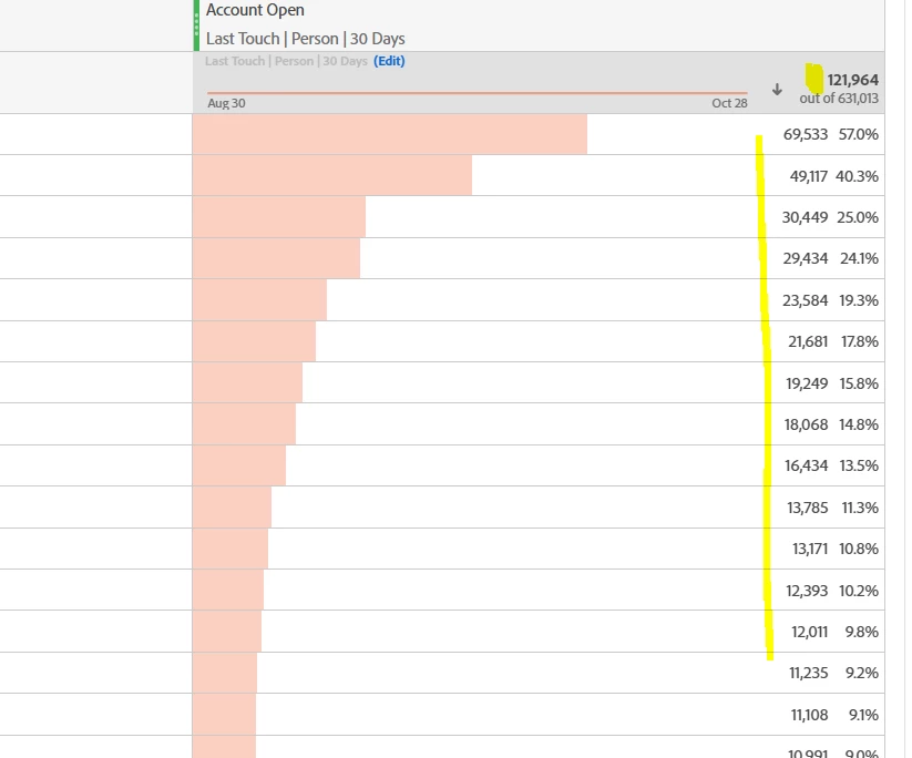 When I apply a non-default attribution model to a metric counting specific events, and I apply it to a Web Page dimension (or any dimension), I notice that the total summary number is different than the row amounts combined. How do I make sense or interpret these numbers, relative to the attribution?