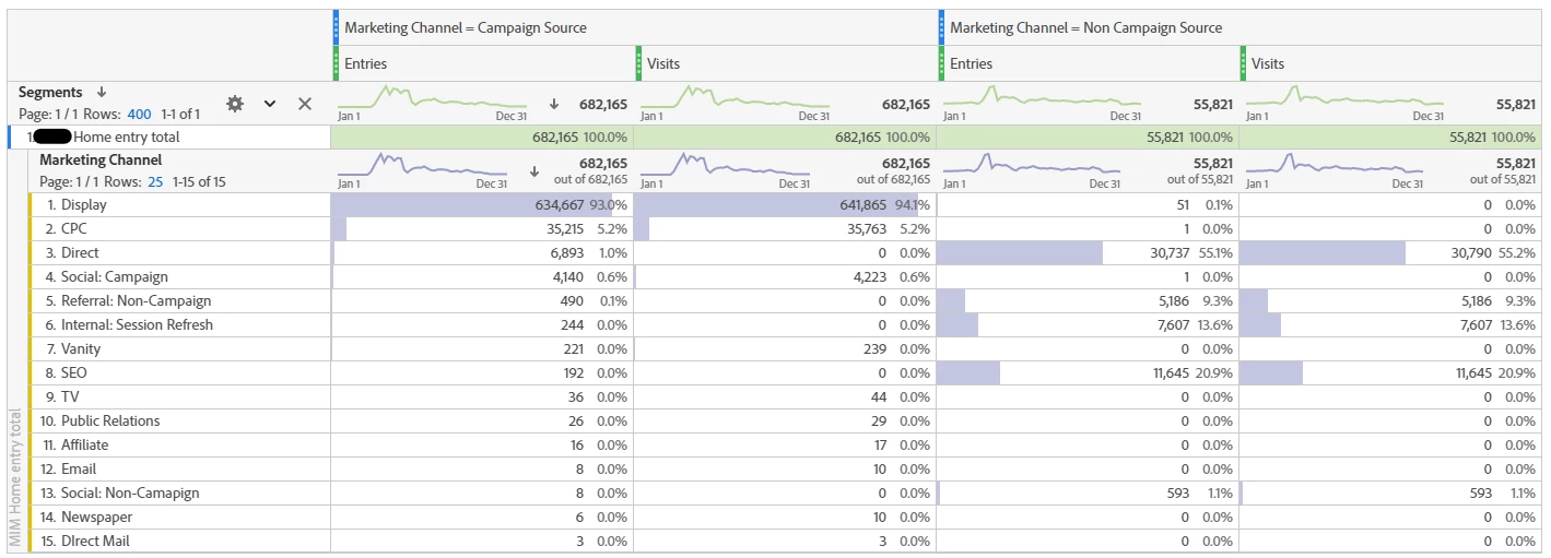 Direct traffic show entries when filtering paid campaigns only