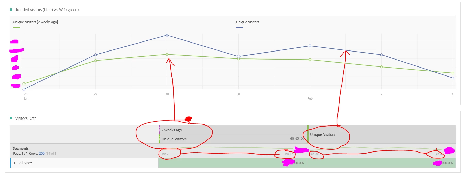 • The ability to trend articles such as this would necessitate a segment, as separating it by month would require the 100+ page view requirement to be met every month, not just across the reporting period.