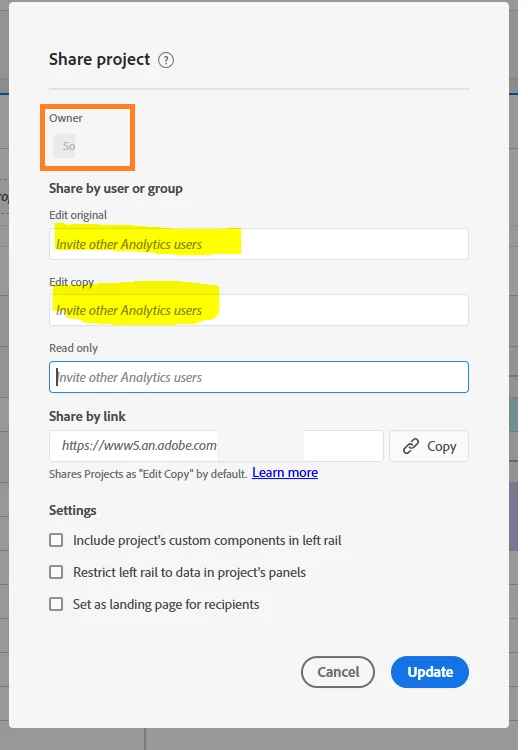 Do not have feature at Workspace Project 'Share' > 'Share with Anyone'
