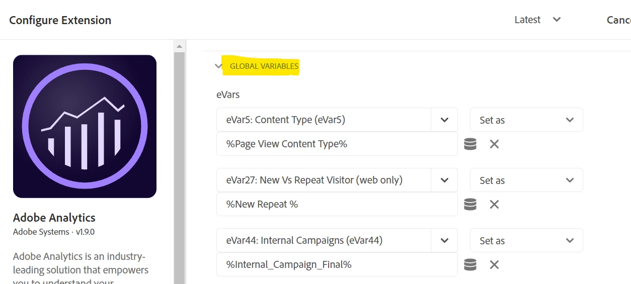 @chrish1471105 I personally do not use the Global Variables section of the Adobe Analytics extension.