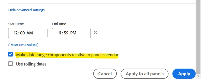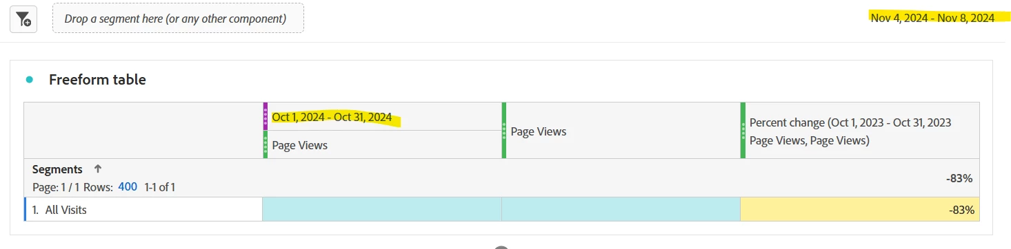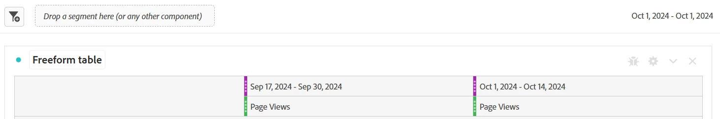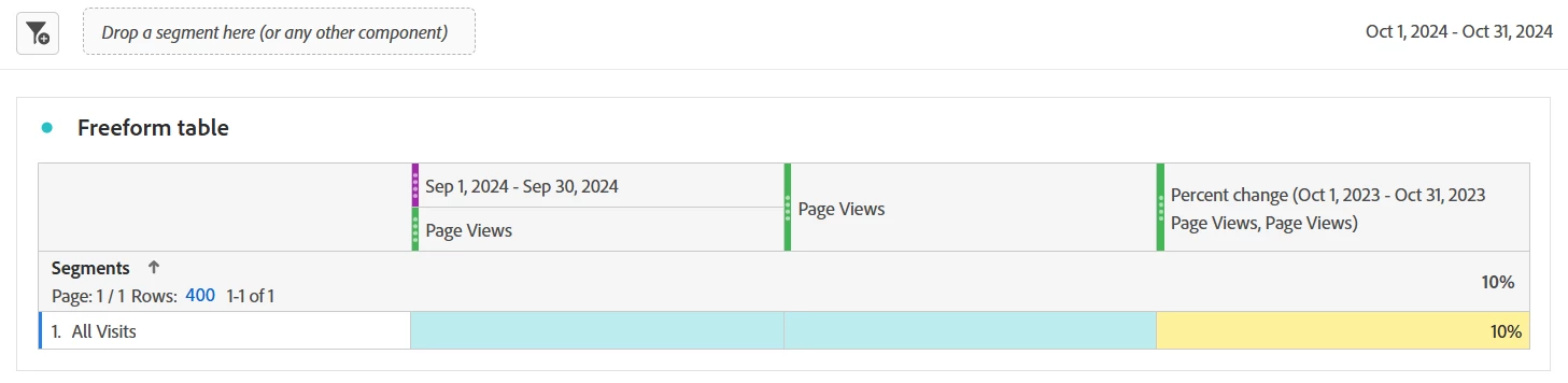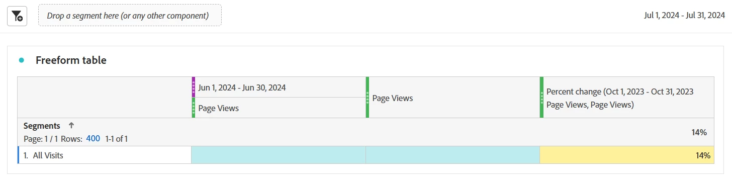 Ideally the comparison date range would be set at the panel level and allow for only the percent change column to be present in the table (or the comparison period also, it would allow either way to work), and update based on the dates input in the panel date range function, and continue to update as the date ranges are changed during analysis.