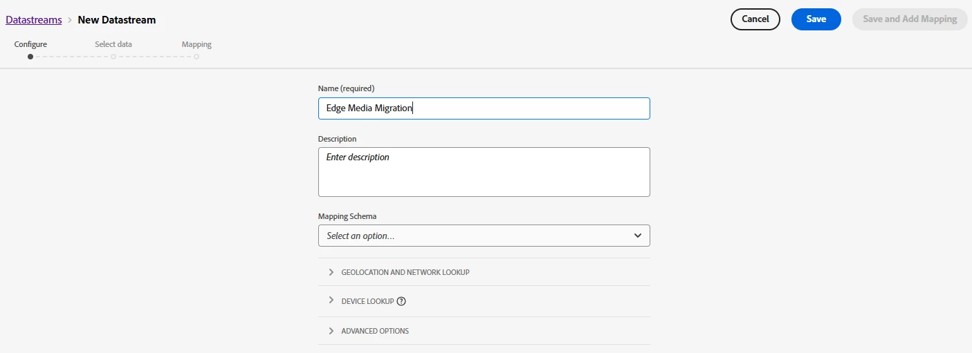 First, you need to create a datastream, or choose an existing datastream. Then check the box for Media Analytics under Advanced configuration options for the datastream.