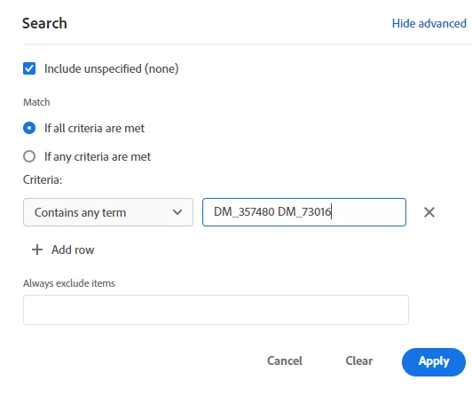 When I use this search filter, it will also return products that contain that number: eg: if I filtered for DM_73016, it also brings DM_730166 too for example.