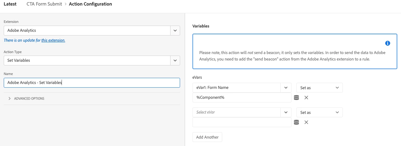 1. Rule in AEPDC to track the form submission to `eVar1: Form Name`, whenever I submit a form on the page "https://beta.form.ca/en.html".