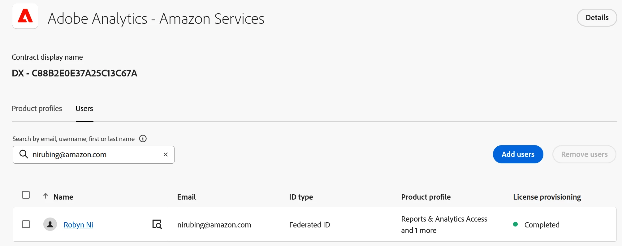 I have tried to grant Adobe Analytics access permissions to two CN colleagues (Ni, Robyn nirubing@amazon.com; Ma, Rocky rockyma@amazon.com ) using admin privileges. While I can see in the system that the permissions have been set up successfully(appendix1), both colleagues are still unable to access Adobe Analytics reports (appendix2).