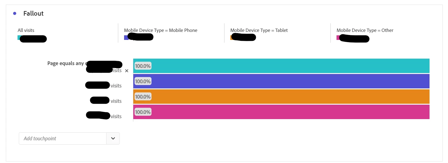 By default, when first creating a Fallout, either "All visits" | "All visitors" pre populates as the first step..... I was under the impression that this Fallout analysis feature is to build a journey that a user takes that i defined within this funnel.... why would there be two different totals that display when one is not applicable to the funnel that I define? Also - when i've duplicated panels that has a Fallout/Funnel - it copies over the same total of "all visits" used in the previous/old panel......